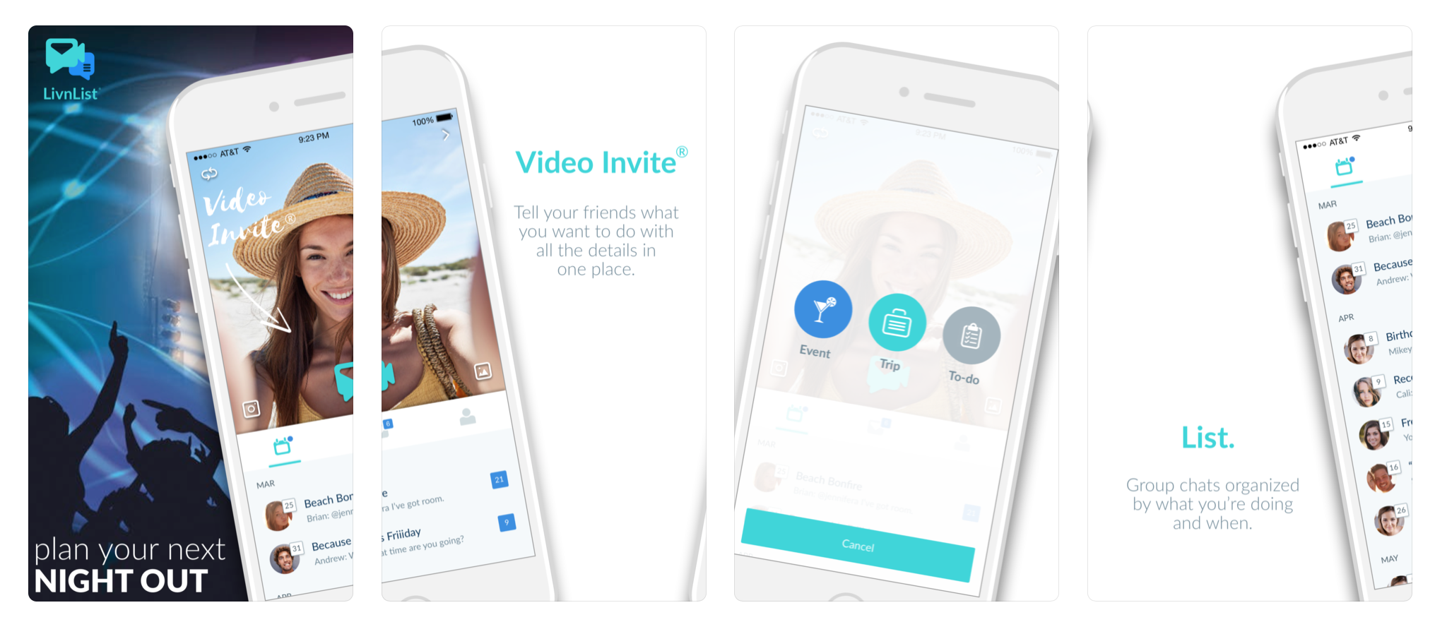 LivnList is a camera-based messaging app for making plans with your friends through video invites whether you are planning a casual event, much needed trip away or simple to-do. It’s as simple as List. Share. Do.